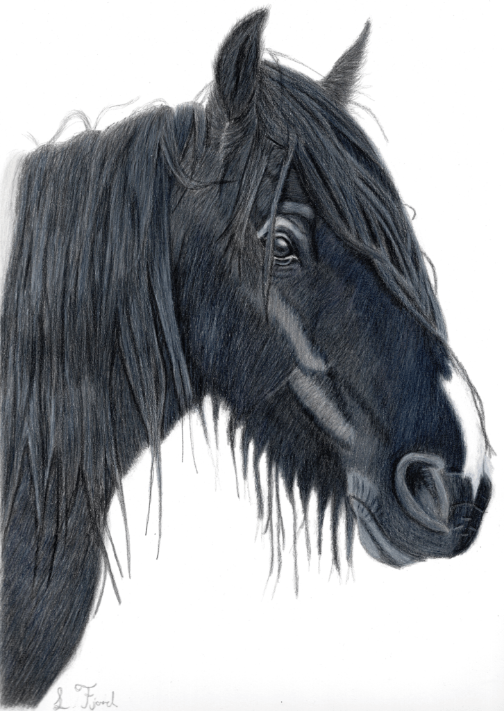 This stunning drawing captures the majestic vibes of a rockstar horse! With a flowing, windswept mane that could rival any 80s rock band, this equine looks ready to take center stage and belt out a power ballad. The artist has meticulously crafted every detail, from the silky strands of the mane to the velvety smooth texture of its face, giving the horse a supermodel-worthy glow-up.