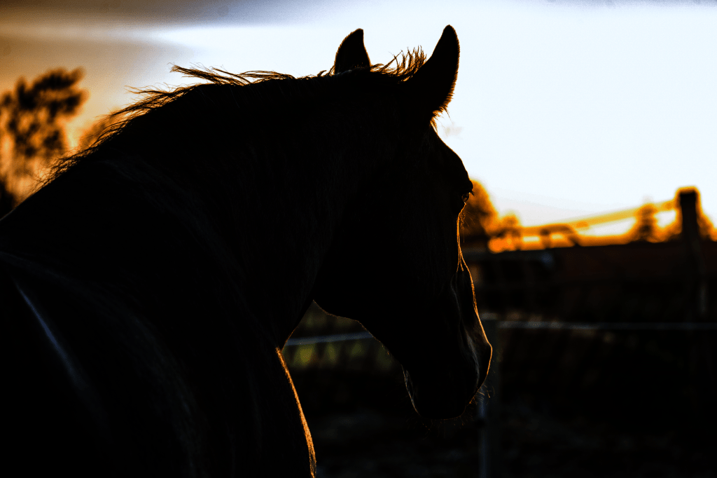 This is a picture of Bianca in the sunset taken from the paddock